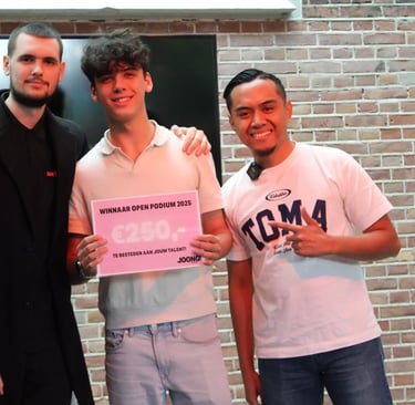 In collaboration with thomasfrank.nl we are the winners of the 2nd edition of JOONG! in 2025. We were chosen by the jury as the winners of the open podium with our presentation on filmmaking as an artform, showcasing many aspects to our craft and presenting 2 of our recent projects.
